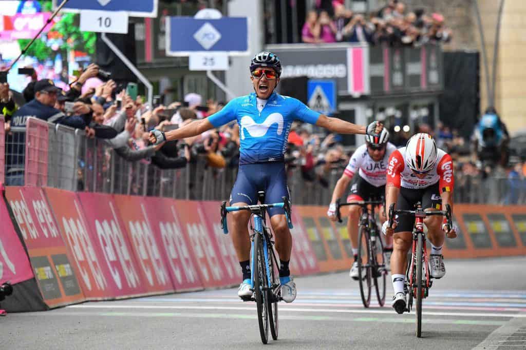 Movistar-rytter Richard Carapaz var raskest i spurten og vant den fjerde etappen av Giro d'Italia tirsdag. Tom Dumoulin veltet og ligger langt bak sammenlagt.