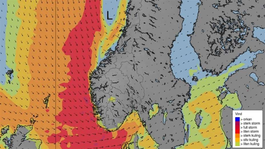 Prognosene for Sør-Norge er ikke gode i kveld heller. Det ventes sørlig liten storm både på kyst og i fjell.