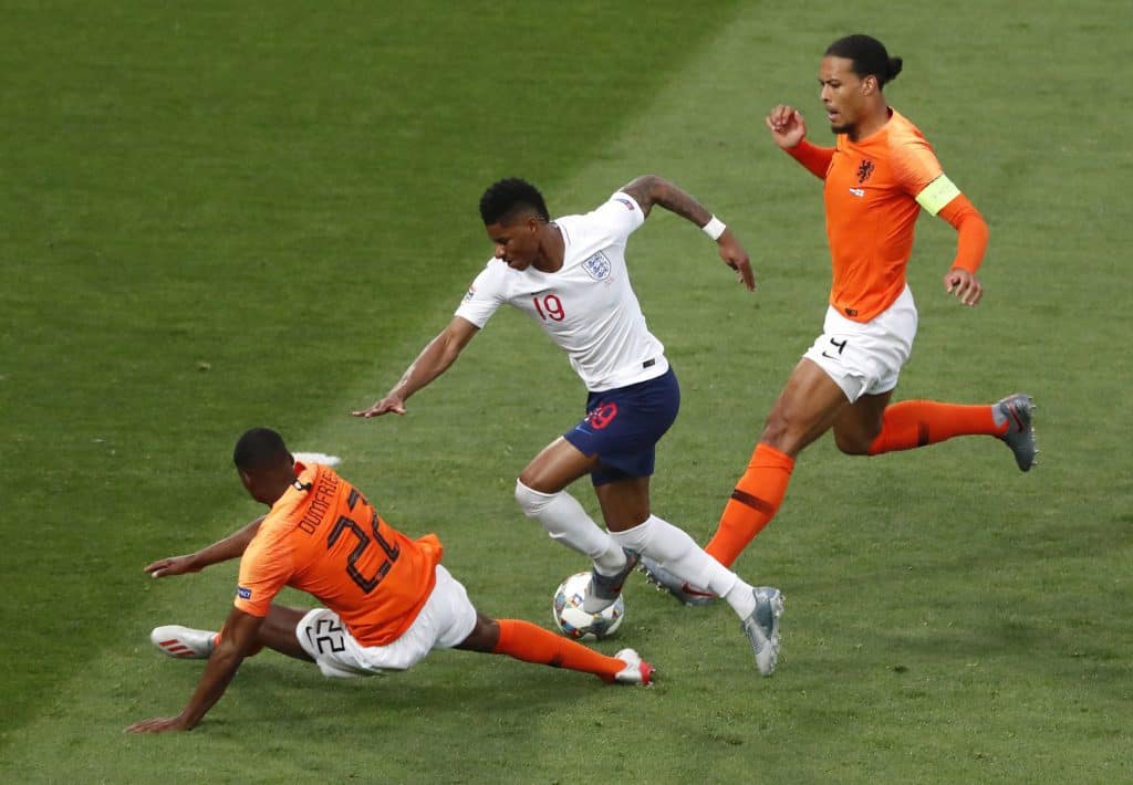 Det var Nederland som styrte det meste av spillet før Rashford ga England ledelsen. Etter målet kom Gareth Southgates menn mer med i kampen og burde ha doblet ledelsen før pause da Rashford ble spilt gjennom i boksen. Kun en susende takling fra Denzel Dumfries reddet de oransje.