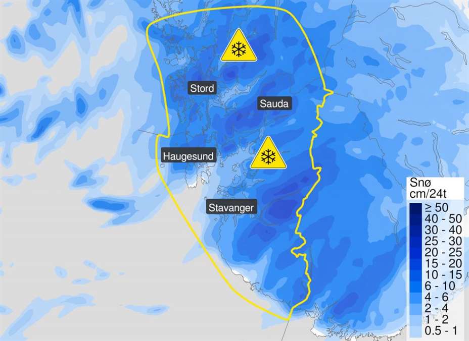 Ekstremvarsel: Meteorologene har sendt ut gult farevarsel for snø i Rogaland og deler av Hordaland.