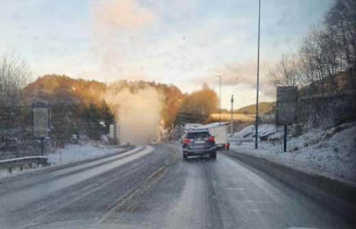 Trafikk: Det kan nesten se ut som røyk og mange vil bli bekymret av slikt. Det kan nemlig se ut som om det er brann i tunnelen.