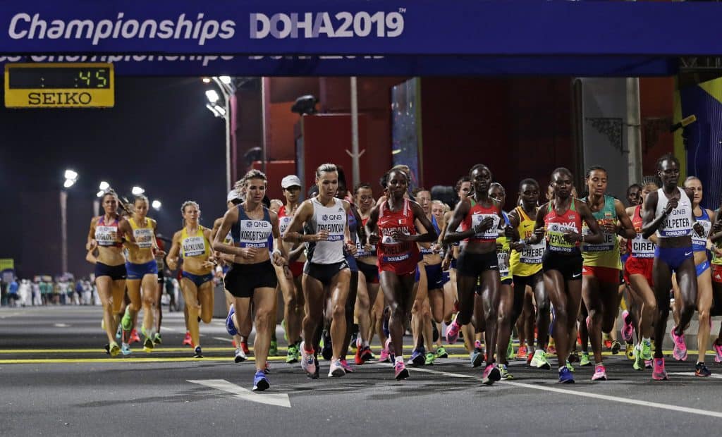 På kvinnenes maratonløp natt til lørdag måtte alle de tre etiopiske utøverne bryte. Kun 40 av 68 startende i løpet kom i mål som følge av den høye temperaturen (32 grader) og en luftfuktighet på 73 prosent.