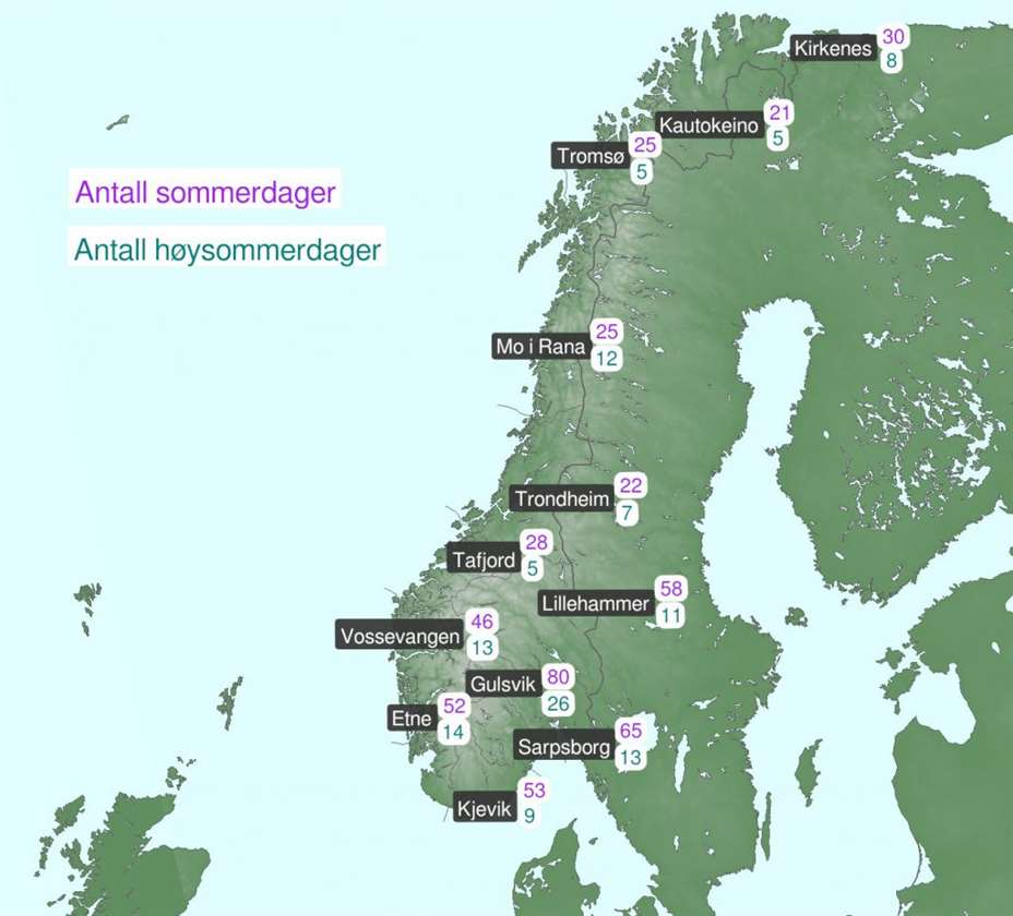 – Vi har sett på temperaturdøgnet (kl. 20-20). En sommerdag har 20 grader eller mer, høysommerdag 25 grader eller mer og tropedag 30 grader eller mer. Dette melder Meteorologene på Twitter.