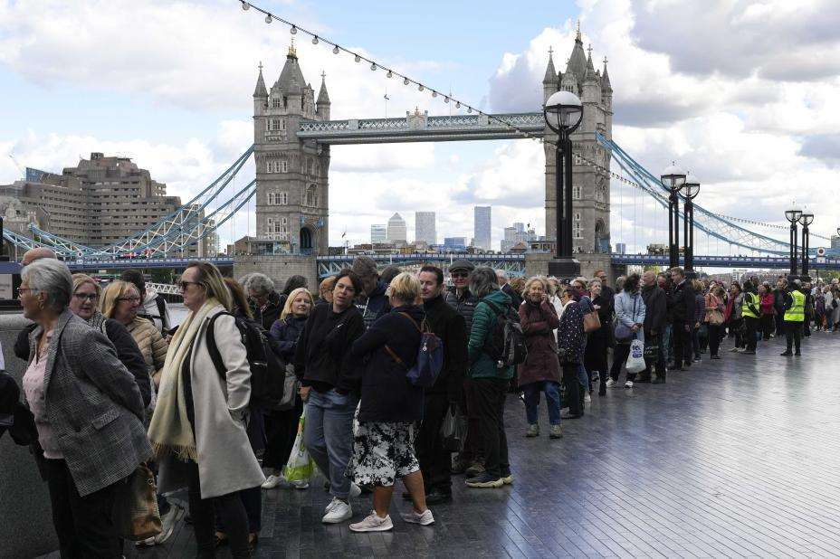 I London er folk villige til å stå i kø i opp til 24 timer for å ta farvel med avdøde dronning Elizabeth. Foto: Markus Schreiber / AP / NTB