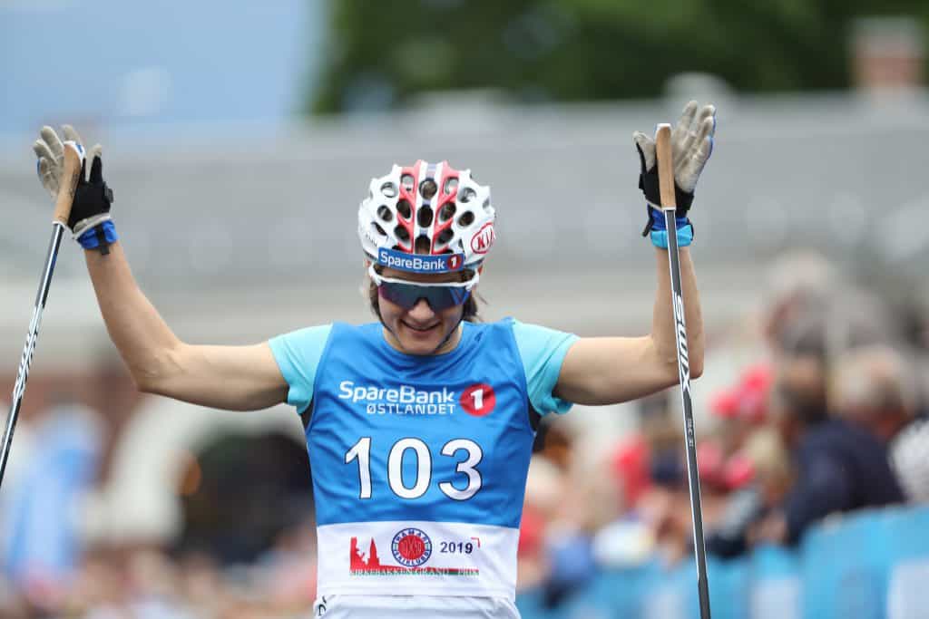 Maiken Caspersen Falla og Johannes Høsflot Klæbo viste konkurrentene ryggen under rulleskirennet Kirkebakken Grand Prix på Hamar onsdag.