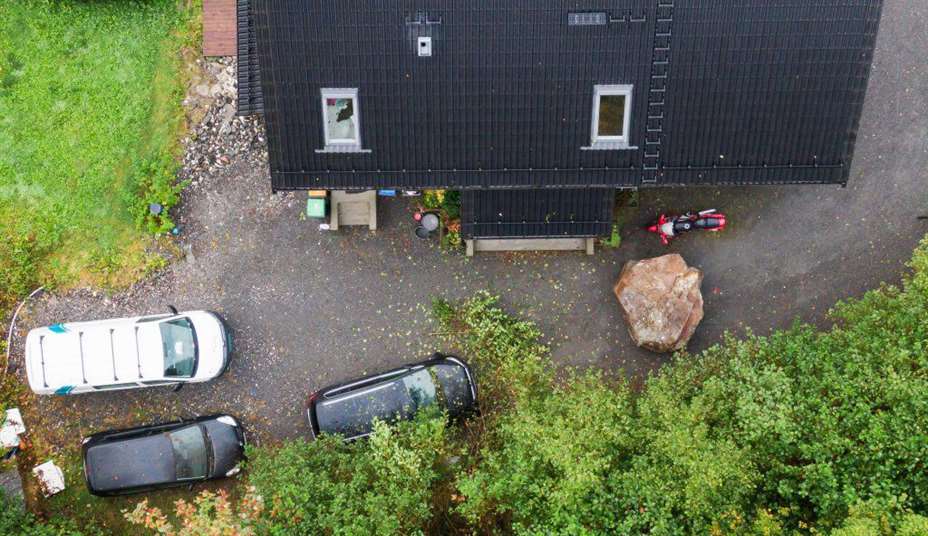 – Da politiet kom fram til stedet, ble det også funnet en stein på flere tonn utenfor inngangspartiet til et hus som ligger nedenfor veien, sier operasjonsleder Sindre Molnes til NTB.