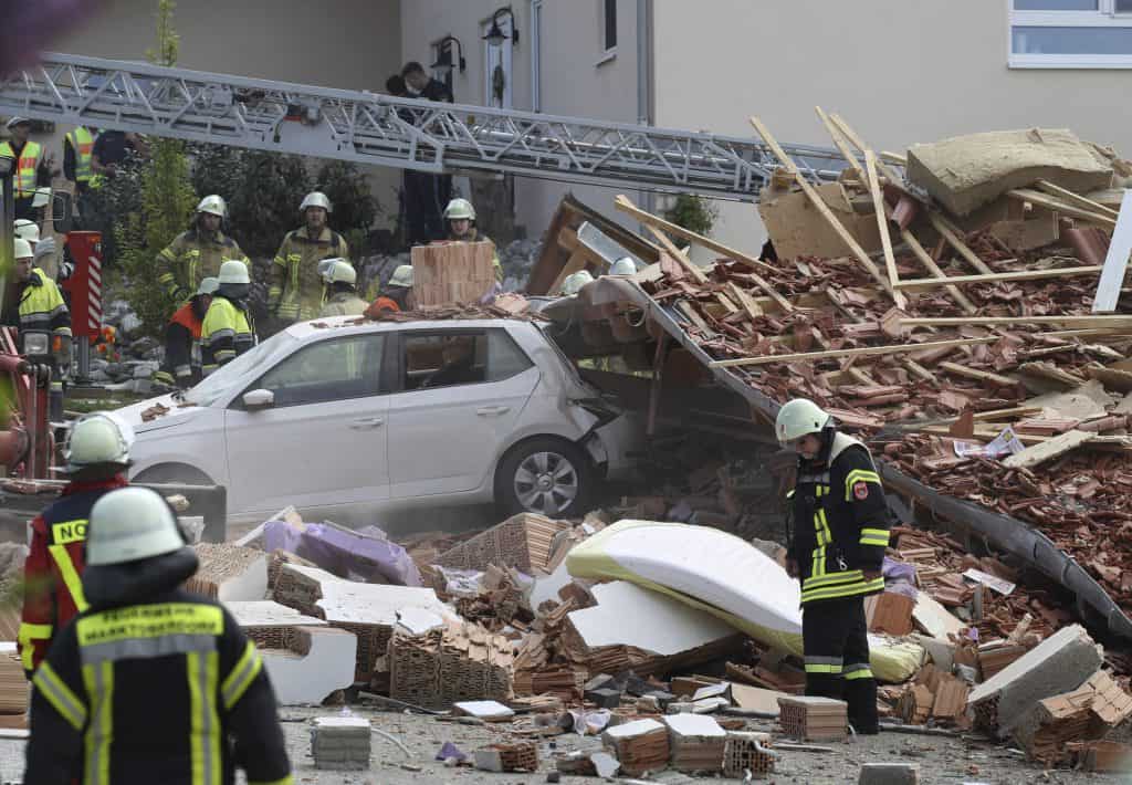 Det er ikke klart hva som var årsaken til eksplosjonen, som la det tre etasjer høye huset i Rettenbach am Auerberg i Bayern i grus. Det er mistanke om en gasseksplosjon, men huset var ikke tilknyttet den lokale gassledningen, ifølge polititalsmann Edmun Martin.