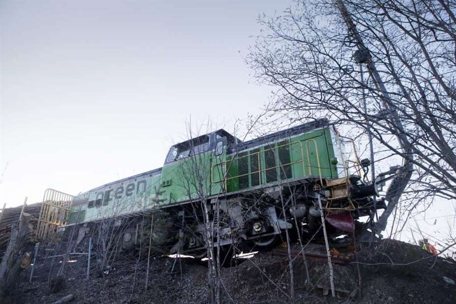 Riksvei 83 ble også stengt, men etter to timer var det avsporede lokomotivet stabilisert og faren ble erklært over.
