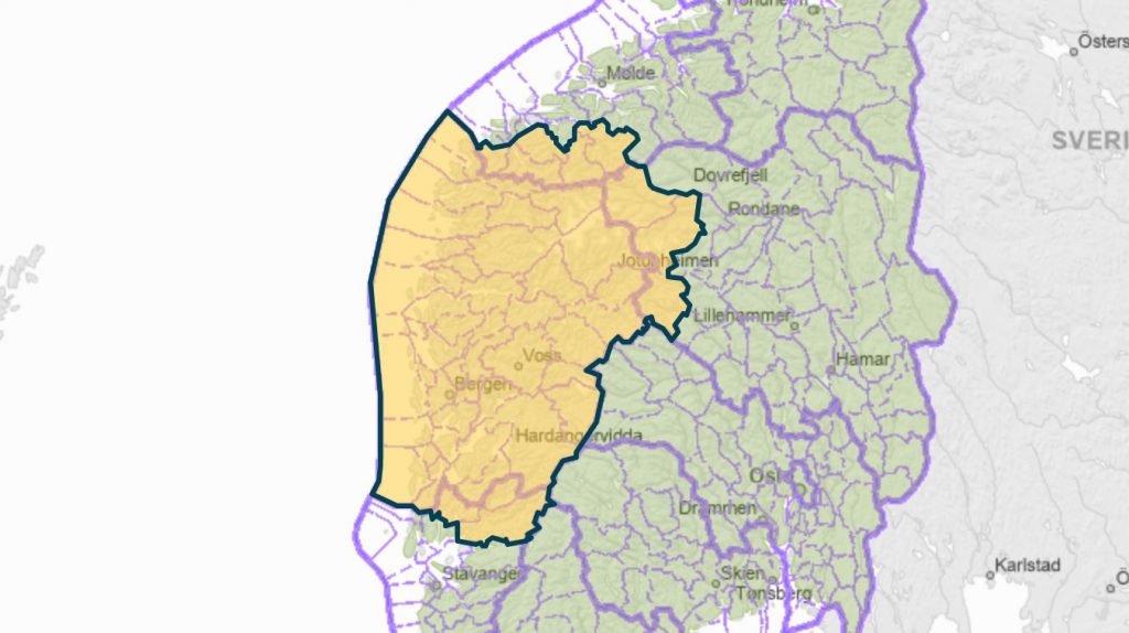 For fredag og lørdag er varslet for Indre deler av Vestland fylke økt til oransje nivå.