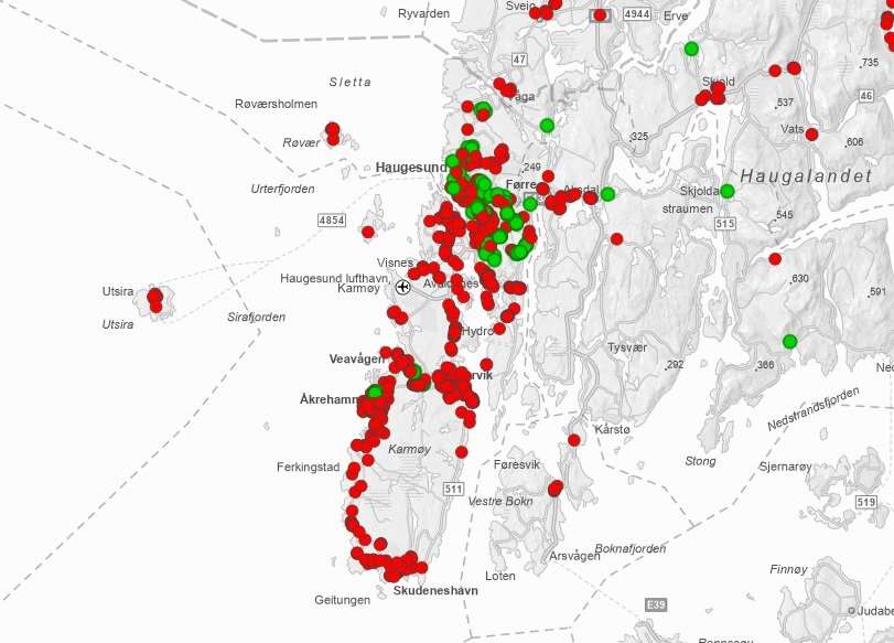 En oversikt fra nettsidene til Haugaland Kraft viser at det er et svært høyt antall gatelys som ikke fungerer, spesielt på Karmøy.