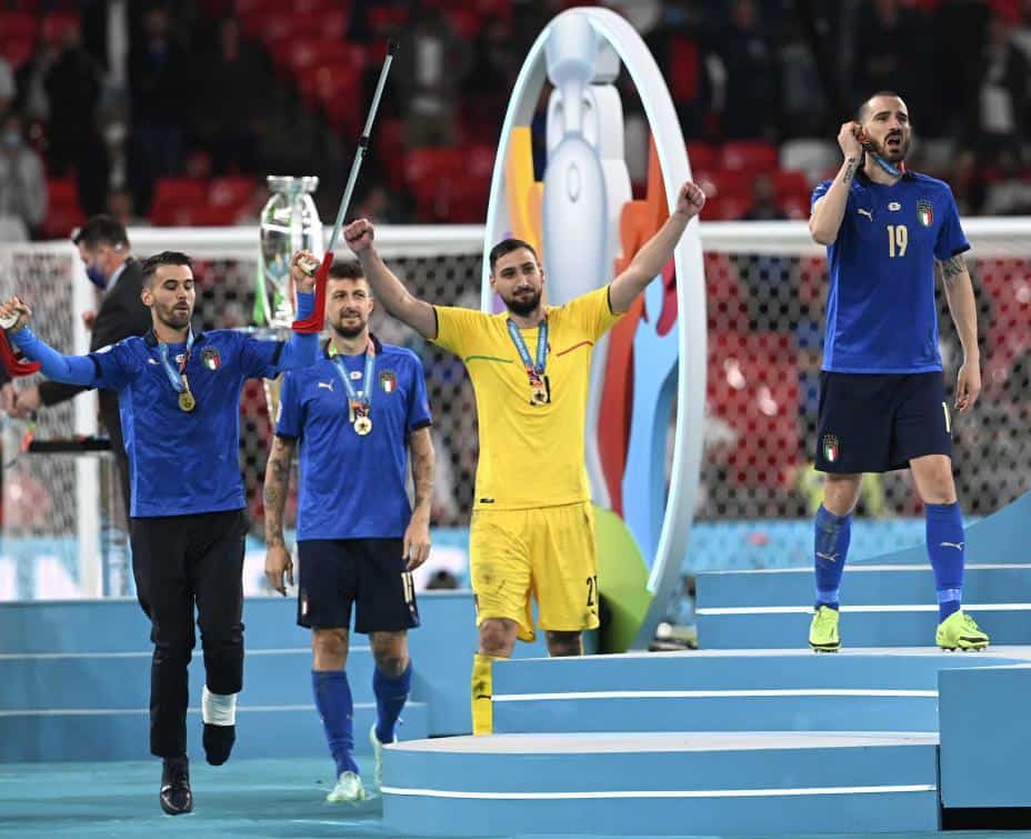 Italia slo England på straffesparkkonkurranse i EM-finalen, og ikke uventet får flere italienere plass på laget. Foruten Chiesa og stjernekeeperen Gianluigi Donnarumma, som ble kåret til mesterskapets beste spiller, gjelder det midtstopper Leonardo Bonucci, venstreback Leonardo Spinazzola og midtbanespiller Jorginho.