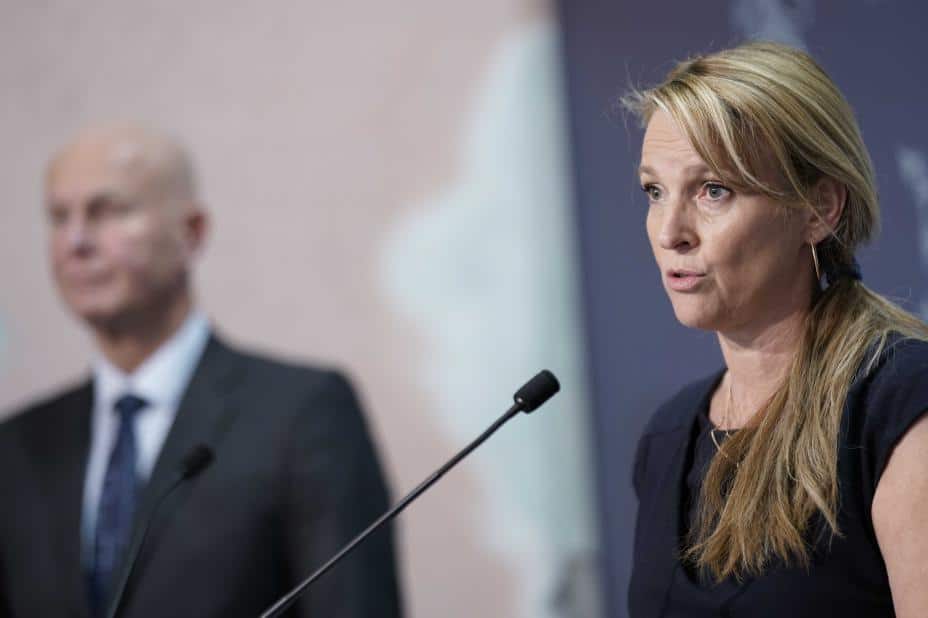 Avdelingsdirektør Line Vold i FHI sier risikoen for innleggelse på sykehus med omikronsmitte er beregnet til 0,2 prosent. Foto: Stian Lysberg Solum / NTB