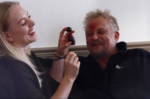 Jahn Dennis Storhøi i sminkestolen FOTO: Kjell Bua)