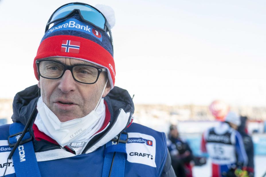 Landslagstrener Arild Monsen var blant dem som så løperne få problemer på det isete underlaget.