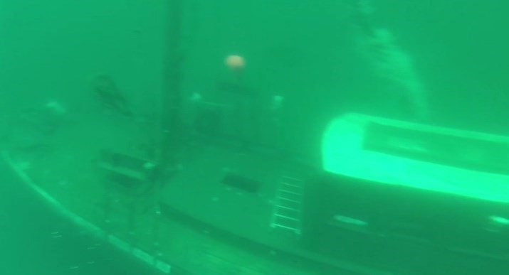Skuten ligger på bunnen her utenfor Norheimsund. Den gamle ærverdige skuten gikk til bunns etter at den hadde vært på slipp hos Djupevåg for to-tre måneder siden.