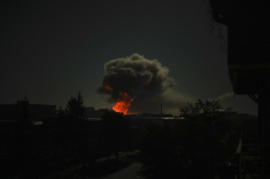 Politikk: Røyksøyler steg til værs natt til lørdag og eksplosjonene utløste nye eksplosjoner, melder nyhetsbyrået AP.