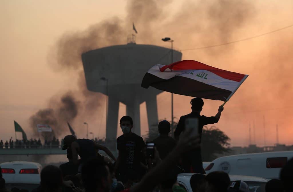 Det er innført portforbud i Bagdad etter de siste dagene demonstrasjoner. Folk protesterer mot myndighetene, mot korrupsjon og høy arbeidsledighet. Foto: Hadi Mizban / AP / NTB scanpix