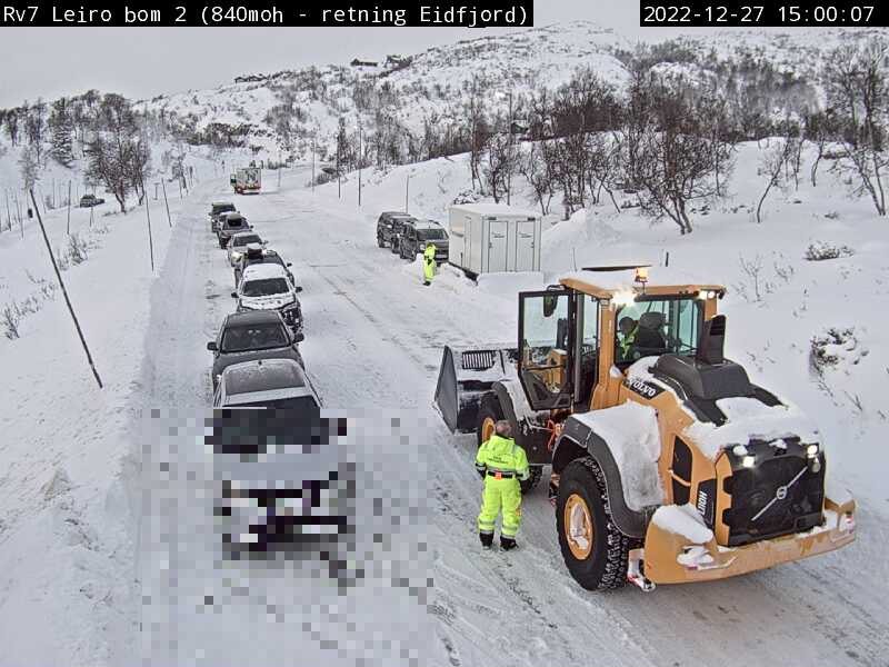 Riksvei 7 over Hardangervidda har vært stengt, men er åpnet for kolonnekjøring.