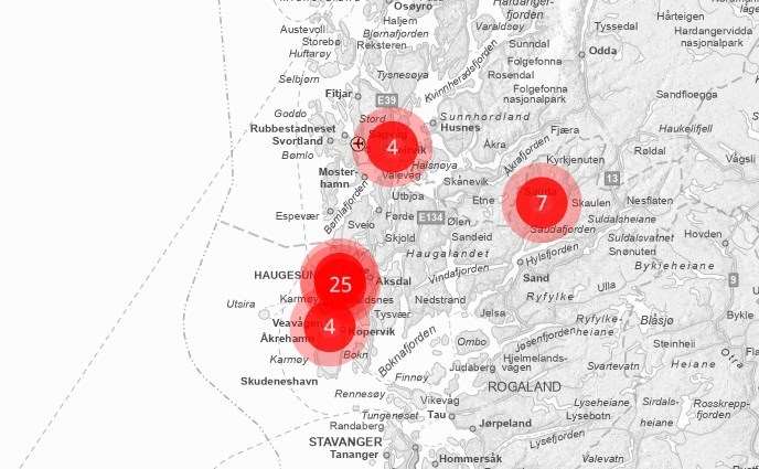 Strømbrudd: Det var flest berørte i Haugesund ved 11-tiden torsdag.