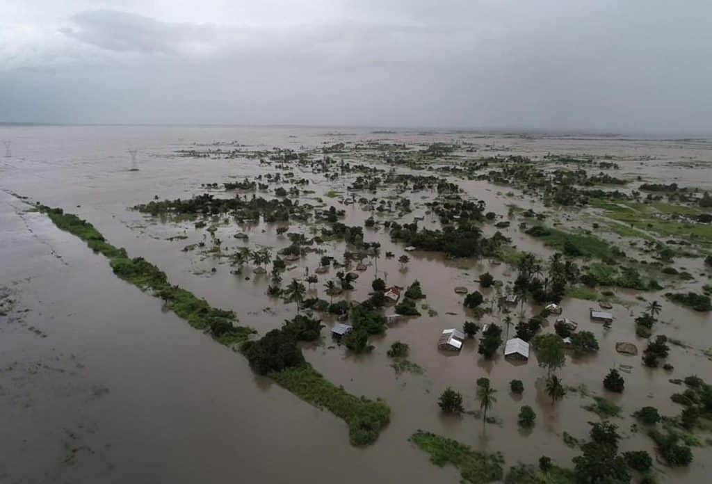 Idai forårsaket svært store nedbørsmengder, og i Mosambik har flomvannet skapt en gjørmete innsjø som er 5 mil bred.