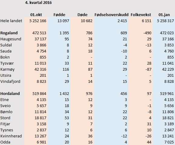 Som eneste fylke hadde Rogaland en negativ nettoflytting i 2016. Fødselsoverskuddet hos rogalendingene ble likevel stort nok til at det ble vekst i folketallet.