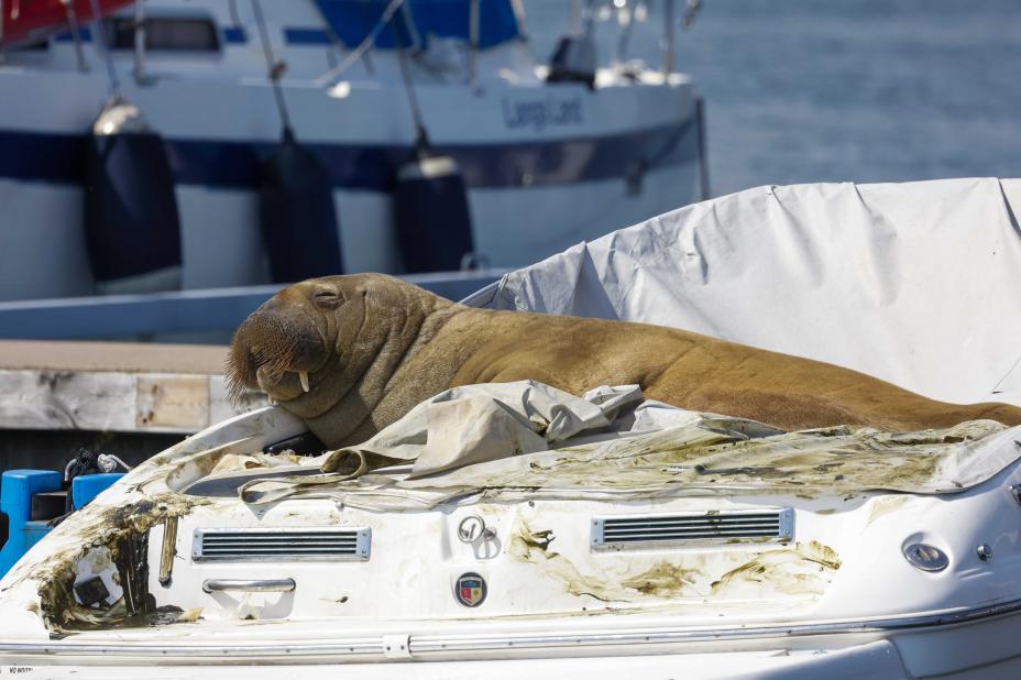 Hvalrossen Freya har slappet av i en rekke småbåter den siste tiden, men det har ikke kommet inn mange skademeldinger, ifølge et forsikringsselskap.