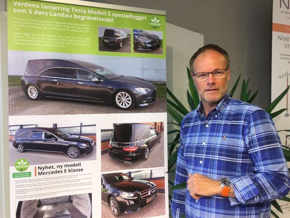 Karmøy Bilsenter er først i verden med 5-dørs Tesla begravelsesbil. Det er Jan Erik Naley, daglig leder i Karmøy Bilsenter som er innovatør.