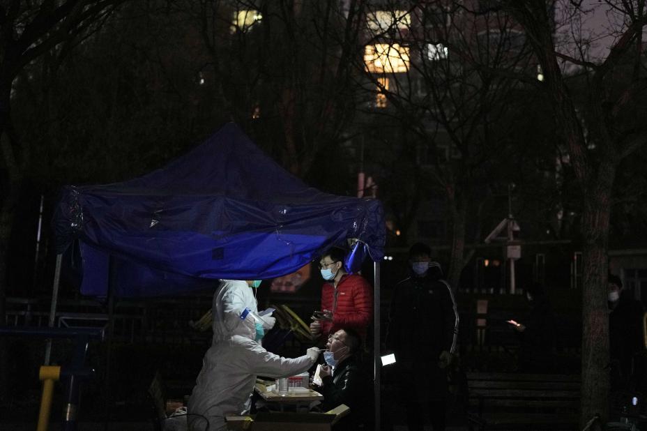 Innbyggere i Beijing blir koronatestet lørdag. Foto: Ng Han Guan / AP / NTB
