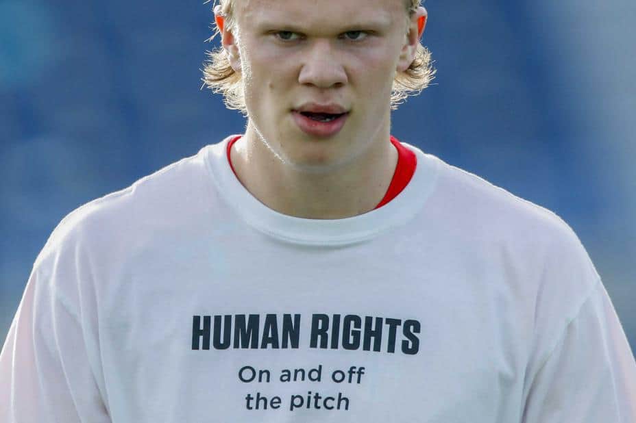 Qatar-debatten her hjemme har vakt stor oppmerksomhet også i utlandet. Bildene av Erling Braut Haaland og resten av landslaget iført T-skjorter med budskap om bedre menneskerettigheter, gikk verden rundt.