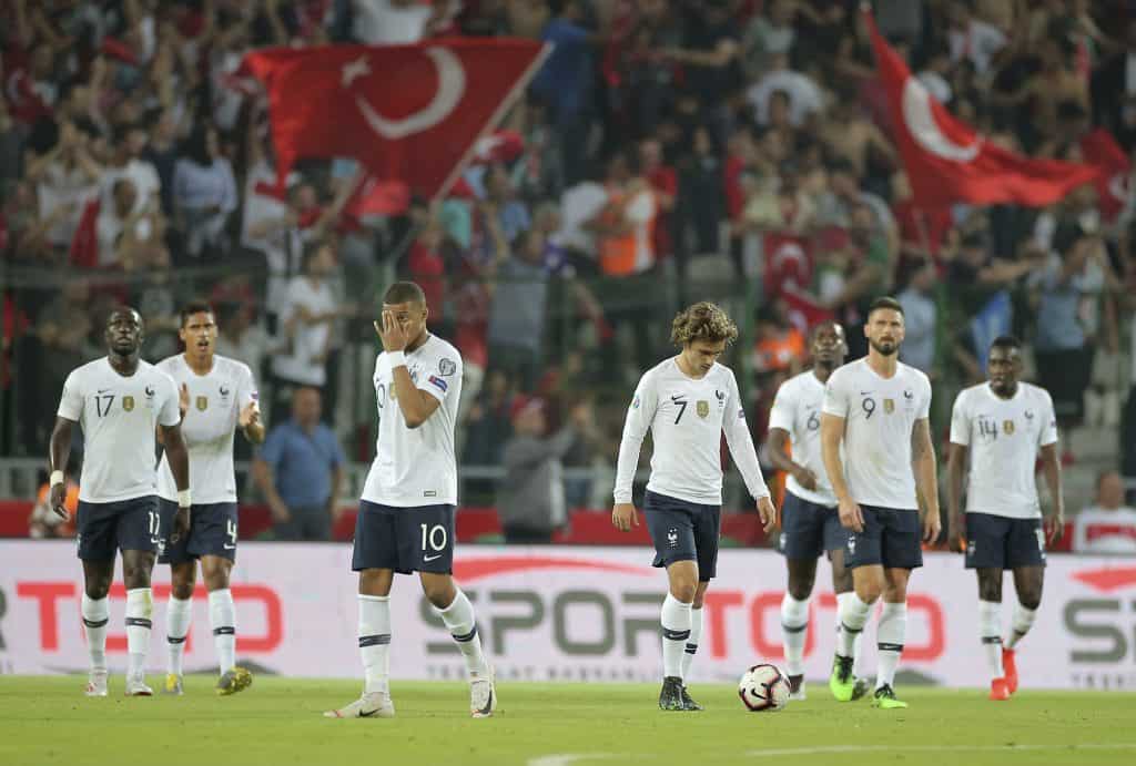 Frankrikes VM-helter måtte se seg slått 0-2 borte mot Tyrkia i lørdagens EM-kvalifiseringskamp. Tyskland og Italia vant oppskriftsmessig.