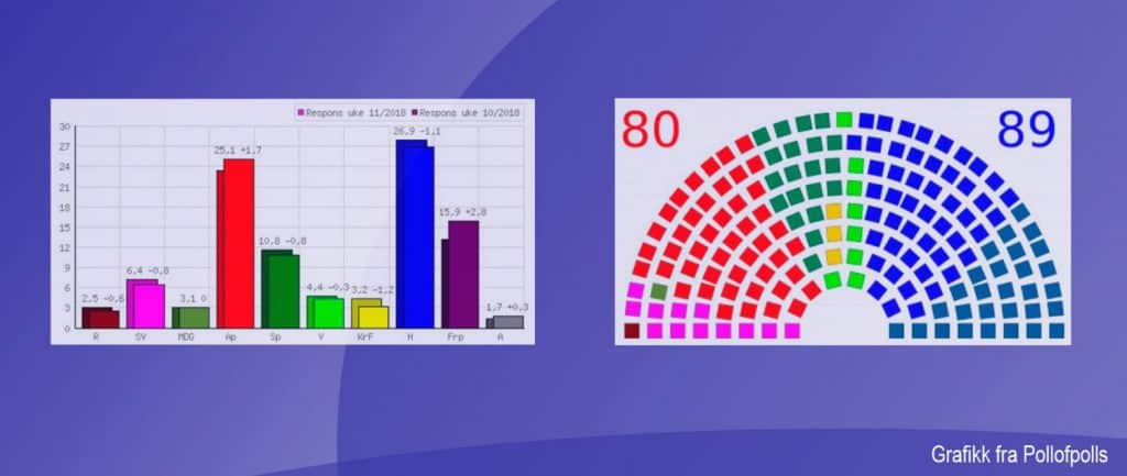 Frp har mistet 17 prosent av velgerne sine til Høyre siden stortingsvalget i 2017. Samtidig går mange Høyre-velgere til Arbeiderpartiet. Høyre får en oppslutning på 26 prosent på den ferske målingen, en framgang på 0,3 prosentpoeng.