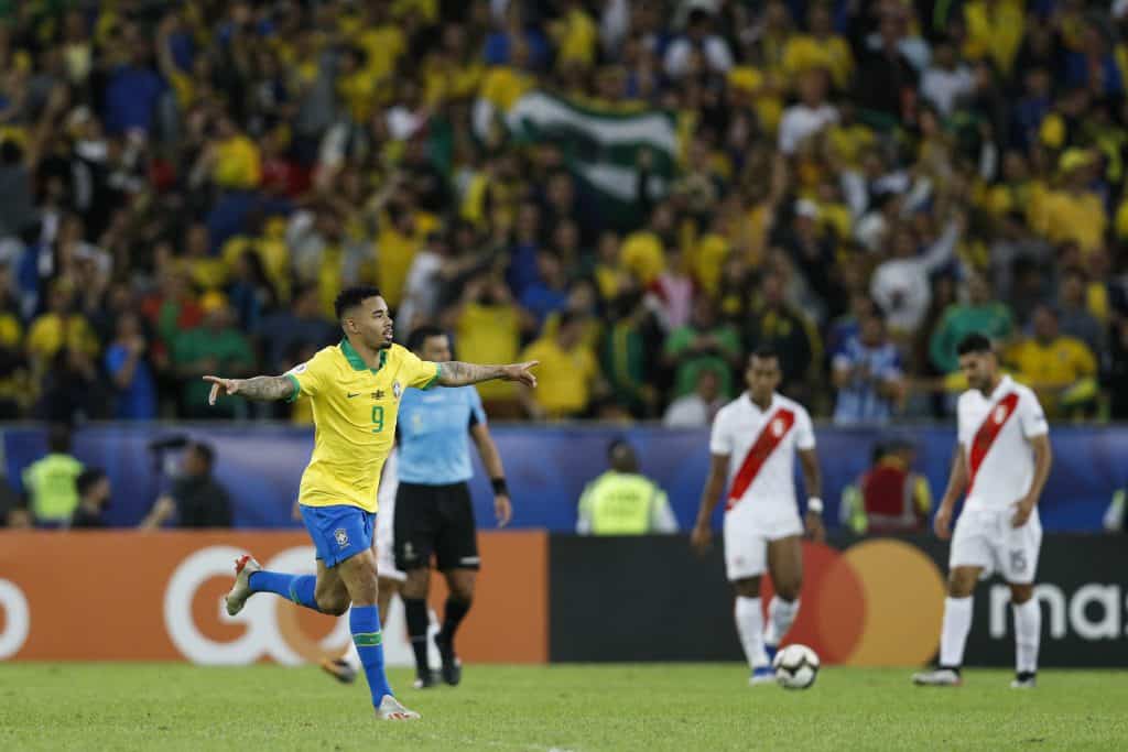 Gabriel Jesus la opp til det første målet og scoret det andre da Brasil slo Peru 3-1 i Copa América-finalen på Maracanã, men skapte spenning ved å bli utvist.