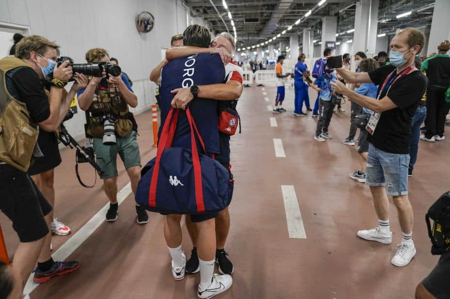 Et fly tidlig søndag venter, og etter sju-åtte minutter med intervju hvor Gjert snakker om at han løp et «relativt perfekt løp», at Norge nå har blitt en sommernasjon, og at Jakob hadde blitt skuffet over sølv, ber han journalistene være greie med Jakob.