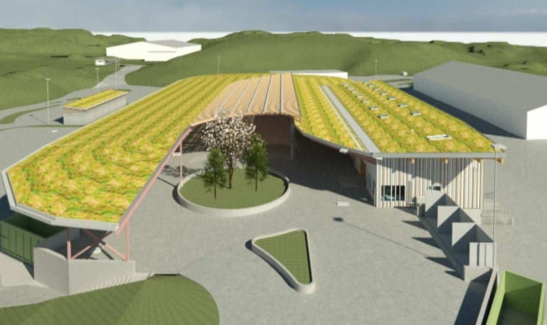 I august 2023 skal den nye gjenvinningsstasjonen i Borgaredalen stå klar til bruk. Illustrasjon: Karmøy kommune