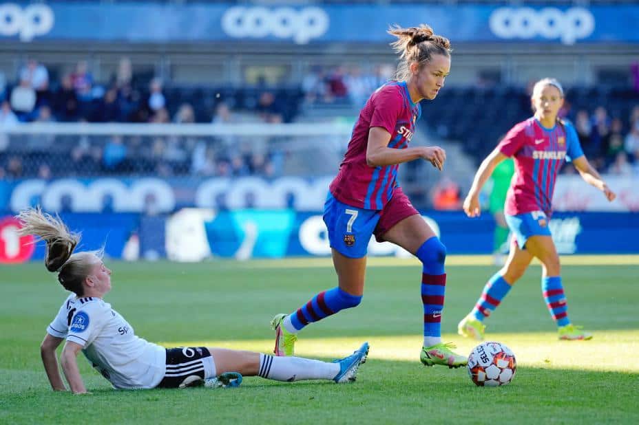 Etter at Aitana Bonmatí hadde gitt Barcelona ledelsen i første omgang, viste Graham Hansen fram skuddfoten fem minutter før full tid. Clàudia Pina la på til 3-0.