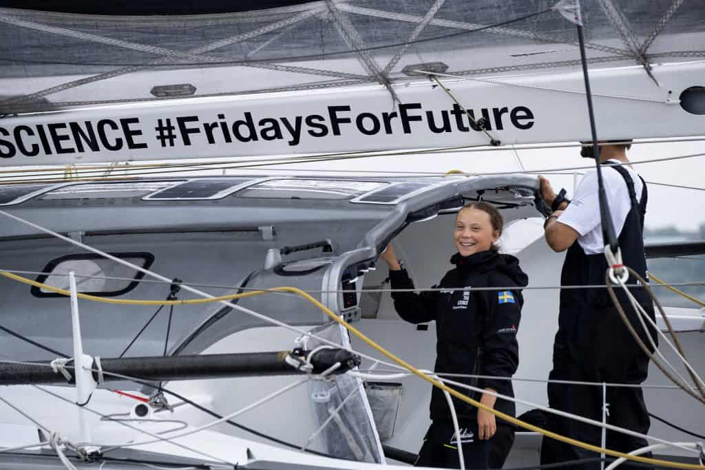 Den heiste seil i den britiske byen Plymouth 14. august. Klimaaktivistens far, Svante Thunberg, har vært med på ferden. Det har også filmskaperen Nathan Grossman, mens Pierre Casiraghi, sønnen til Monacos prinsesse Caroline, er en av båtens to kapteiner.
