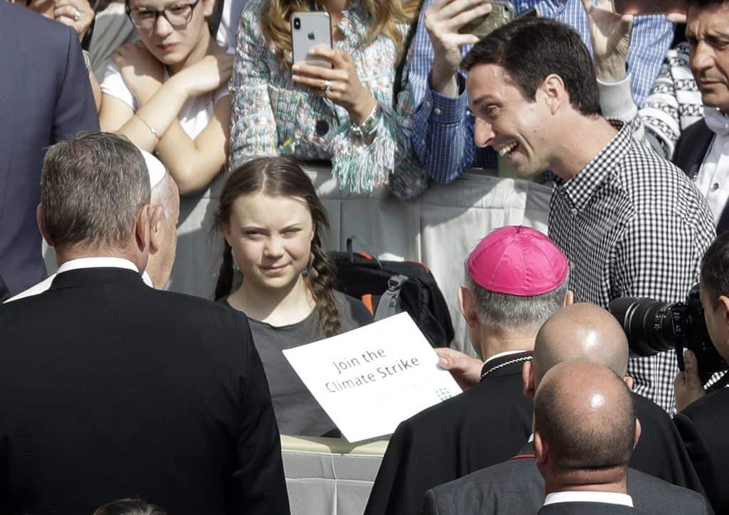 Hun lot ikke den korte audiensen være et hinder for å få fram budskapet sitt, og markerte det med et skilt med påskriften «bli med i klimastreiken». Skiltet viste hun fram da pave Frans på slutten av audiensen kom opp til området hvor Thunberg satt.