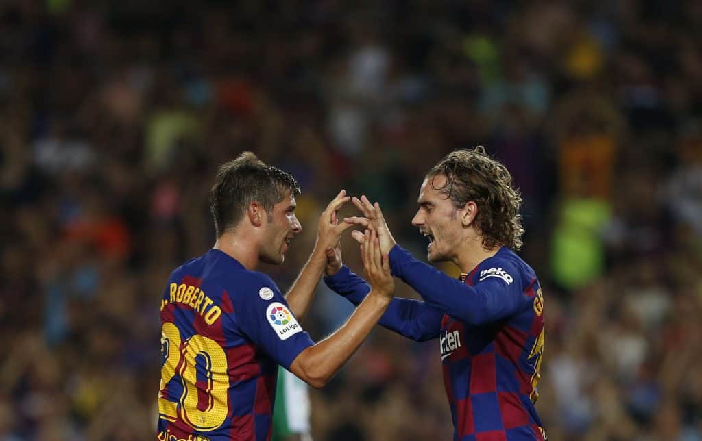 Barcelona fikk en tung start på årets første hjemmekamp i La Liga, men to scoringer av Antoine Griezmann bidro til at det ble 5-2-seier over Real Betis søndag.