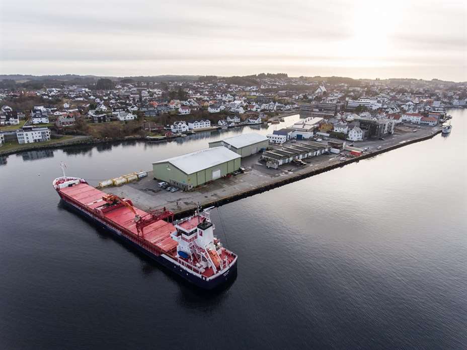 Et 110 meter langt lasteskip gikk ved 11.30-tiden fredag på grunn ved Moksheim i Karmsundet.