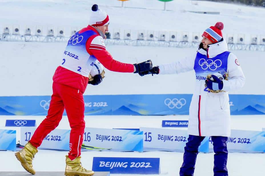 Aleksander Bolsjunov tråkket rundt i gullsko etter sin tredje OL-tittel i langrenn.