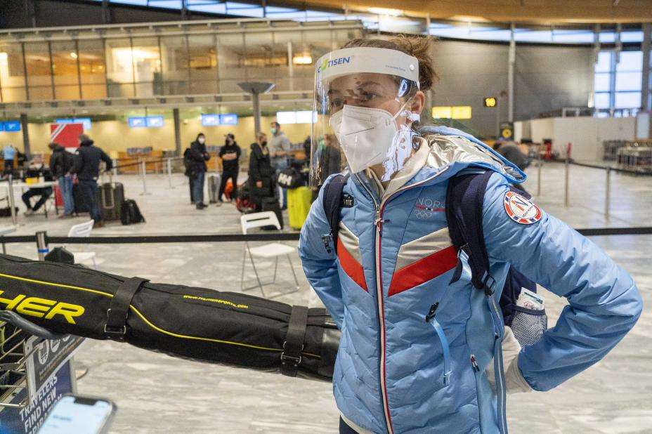 På passasjerlisten mandag sto blant andre skihoppere, alpinister og kombinertløpere. I ankomsthallen ventet helsepersonell fra Olympiatoppen med hurtigtester for å utelukke koronasmitte.