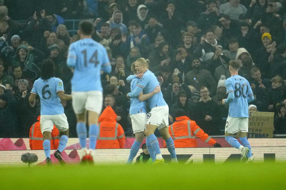 Haaland brukte mindre enn ti minutter på å score igjen etter den lange VM-pausen. Han ga Manchester City 1-0-ledelse da han kom seg foran Joe Gomez ved nærmeste stolpe og saksesparket inn Kevin De Bruynes innlegg fra venstre på volley.