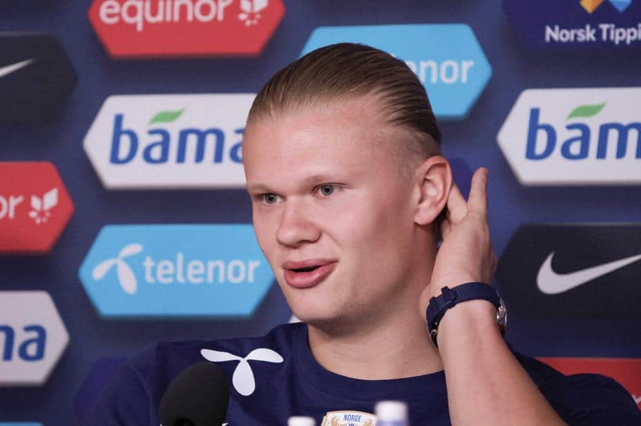 Haaland nektet å svare på spørsmålene om hans neste arbeidsgiver, men lyste opp da han fikk spørsmål om landslaget.