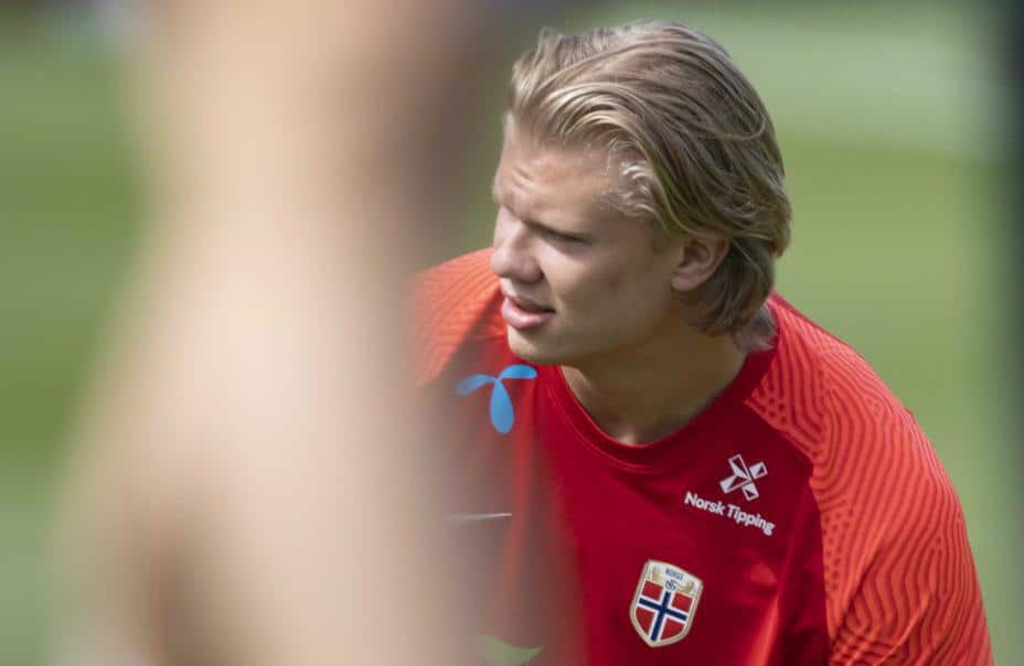 Erling Braut Haaland endte på tredjeplass i Kickers kåring av årets spiller i tysk fotball. Foto: Geir Olsen / NTB