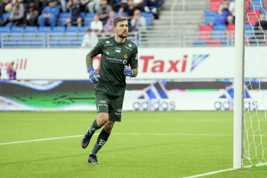 Bodø/Glimts målvakt Nikita Haikin måtte ut med skade i Litauen. Her mot Vålerenga i cupen tidligere i år. Foto: Beate Oma Dahle / NTB