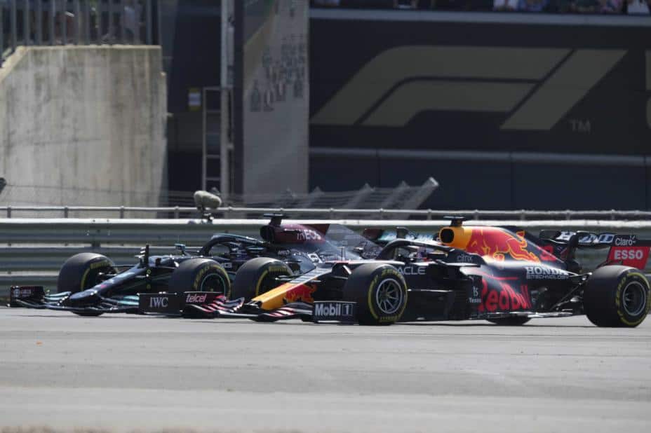 Mot slutten av den første runden traff en aggressiv Hamilton bakhjulet til Verstappen, som føk ut av veien og traff barrieren i en høy hastighet på rundt 280 kilometer i timen. Bilen til Verstappen endte opp nærmest som et totalvrak.