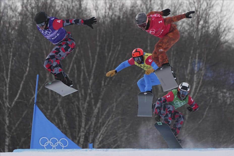 Alessandro Hämmerle utkjempet en tett duell med canadiske Éliot Grondin i OL-finalen i snowboardcross. Østerrikeren vant med noen centimeter.