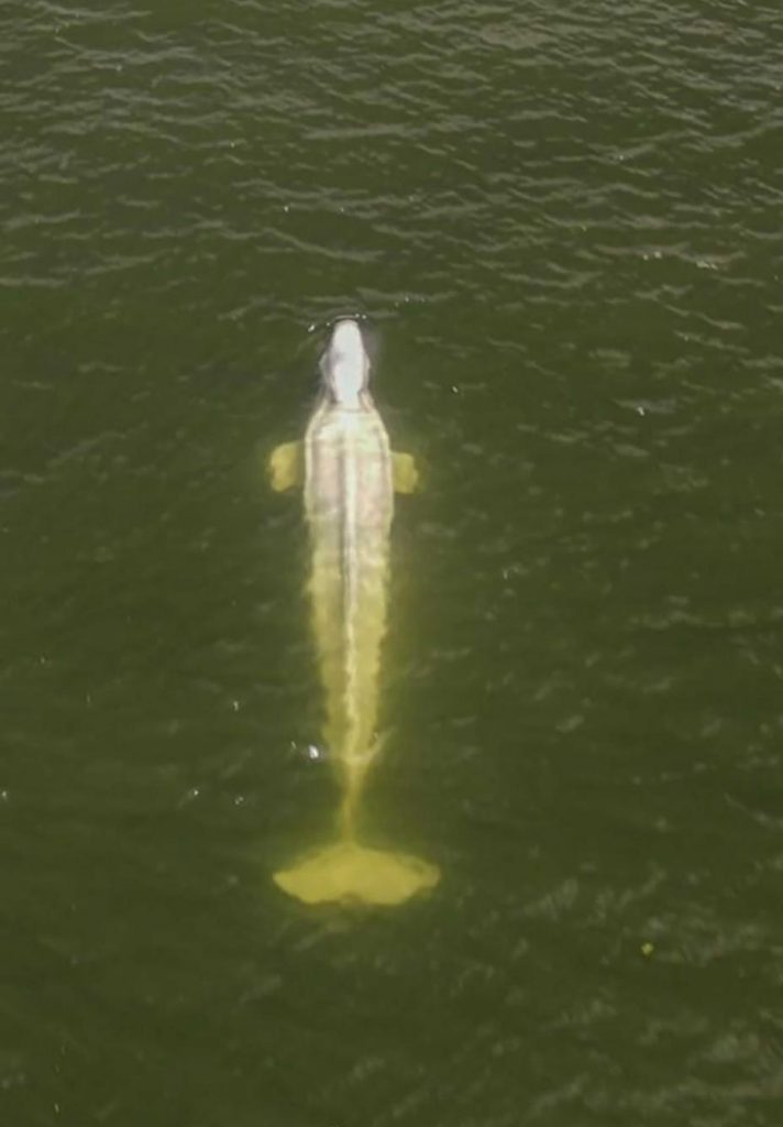 Den magre hvithvalen som er strandet i elven Seiene utenfor Paris nekter å spise, ifølge redningsmannskaper. Håpet om å redde den, svinner. Foto: Sea Shepherd via AP/NTB