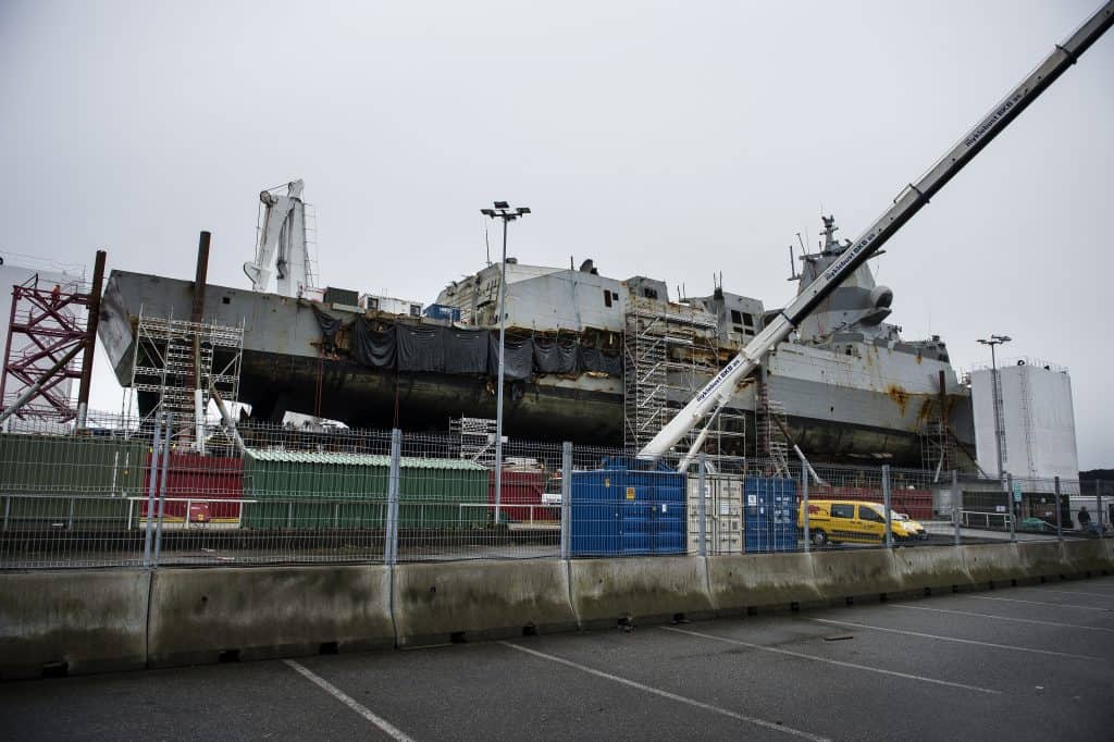 Fregatten KNM Helge Ingstad kolliderte med tankskipet Sola i november i 2018. Fregatten er nå fraktet til Haakonsvern i Bergen.
