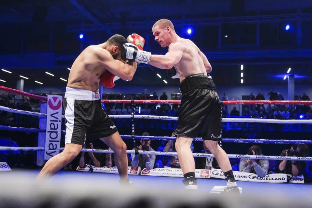 Etter to avventende runder, traff nordmannen med gode slag i tredje runde. Kraftige slag mot Rashids kropp, gjorde at tyskeren til slutt tok telling. Han kom seg opp før dommeren telte til ti, men kampen ble likevel stanset.